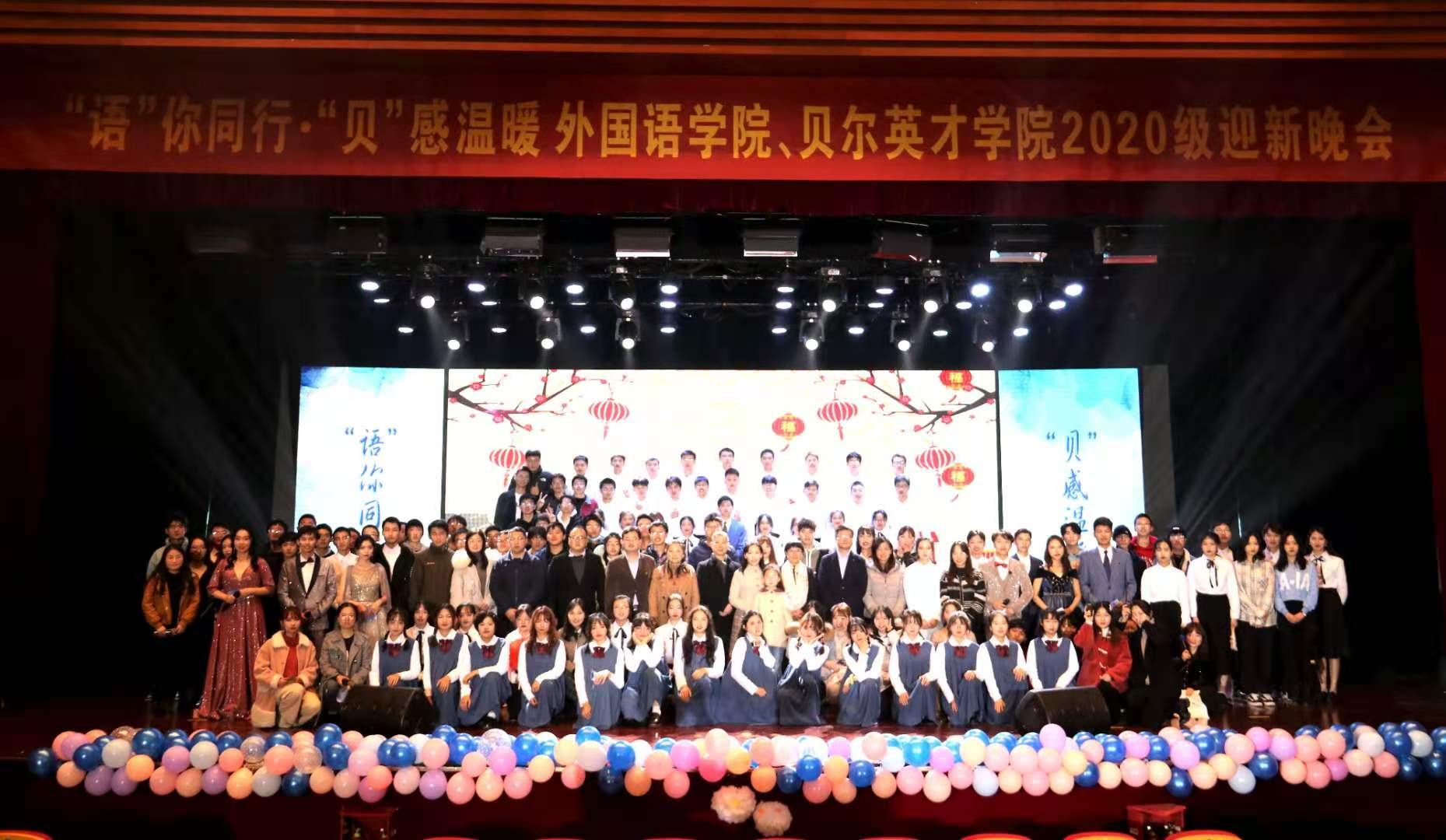 11月29日晚, 999策略手机论坛网址、贝尔英才学院联合举办的“语”你同行,“贝”感温暖2020级迎新晚会在南京邮电大学仙林校区青春剧场举行,校部分职能部门负责人,999策略手机论坛网址、贝尔英才学院领导、各系部主任、部分教师代表、2020级全体同学参加了晚会。