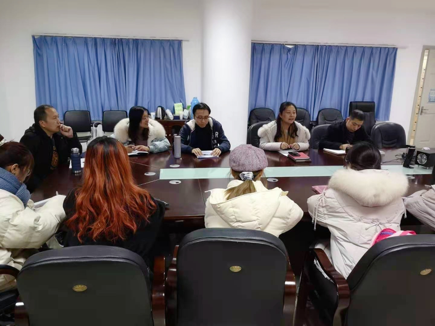 王雪玉老师以自身带队参赛的丰富经验,从作品选题、研究方法、研究过程、项目分工、成果展示以及团队建设等方面,为策略官网参赛团队带来了一场干货满满的经验分享会。学院挑战杯赛事遴选成员及指导老师分组召开了项目推进会。