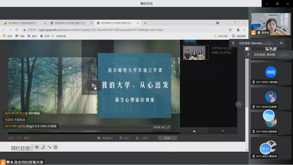 疫情防控教育、心理健康教育、网络道德教育、校纪校规教育和班风学风教育由2021级辅导员高艳丽主讲。疫情之下,当代青年大学生应当如何作为;面对新环境新角色,该做好什么样的心理准备,如何进行心理调适;我们为什么要营造清朗气清的网络空间,应该如何在网络上规范自己的言行,校纪校规的哪些底线不能突破,法律法规的哪些红线不能触碰,怎样破冰才能尽快融入新的班集体,如何在良好的学习氛围中开启大学新生活。高老师通过这些问题引导新生深思,通过各类真实案例和心理中心录制的心理微课《大学生活,从心出发》为同学们上了一堂生动形象的大学第一课。