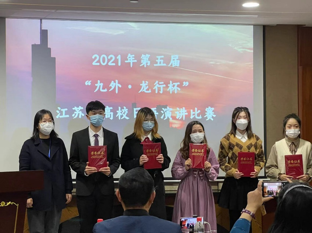 11月27日,第五届“九外·龙行杯”江苏省高校日语演讲比赛在南京林业大学举行。策略官网日语系学生周雨慧参加比赛并获二等奖,指导教师单晓燕、小椋学获优秀指导教师奖。