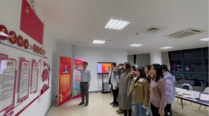 陈晓波书记对新发展党员在建党100周年这一极为重要的历史时刻光荣加入党组织表示祝贺。在陈书记的领誓下,全体新党员面对党旗庄严宣誓,铿锵有力的铮铮誓言,表明了自己为党和国家奋斗终身的坚定决心,表达了自己对中国共产党的无限热爱。