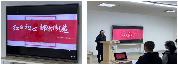 班会由学生自编自演历史情景剧《人在信在,使命必达》开场,革命时期“人在文件在,不怕流血牺牲”的战邮精神感染全场。随后,闫家凯同学以“信达天下,烽火华夏”为题进行演讲,号召同学们学习庞耀同志“为革命哪怕千辛万苦”的精神,赢得同学们阵阵掌声。通过击鼓传花的方式,同学们竞答红色校史知识,使同学们在欢乐的氛围下汲取力量,“薪”火相传。