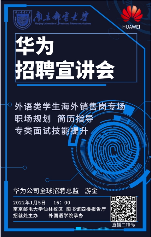为进一步做好我院毕业生就业指导工作,激发学生就业意识,挖掘就业潜能,提升就业技能,2022年1月5日,由招生就业处主办、999策略手机论坛网址承办的华为高管走进南京邮电大学大学生职业规划与就业能力提升专场讲座在仙林校区图书馆四楼报告厅成功举办,本次活动面向全校展开,邀请到华为公司全球招聘总监、人才测评专家游金老师为同学们带来以“认识自己,过有规划的人生”为主题的职业规划与就业能力提升讲座。999策略手机论坛网址全体辅导员、2018级、2019级学生、部分兄弟学院在校同学现场参加,本次活动同时开设了在线直播,吸引了全校共400余名同学线上同步聆听。999策略手机论坛网址副院长陈琳老师主持本次活动。