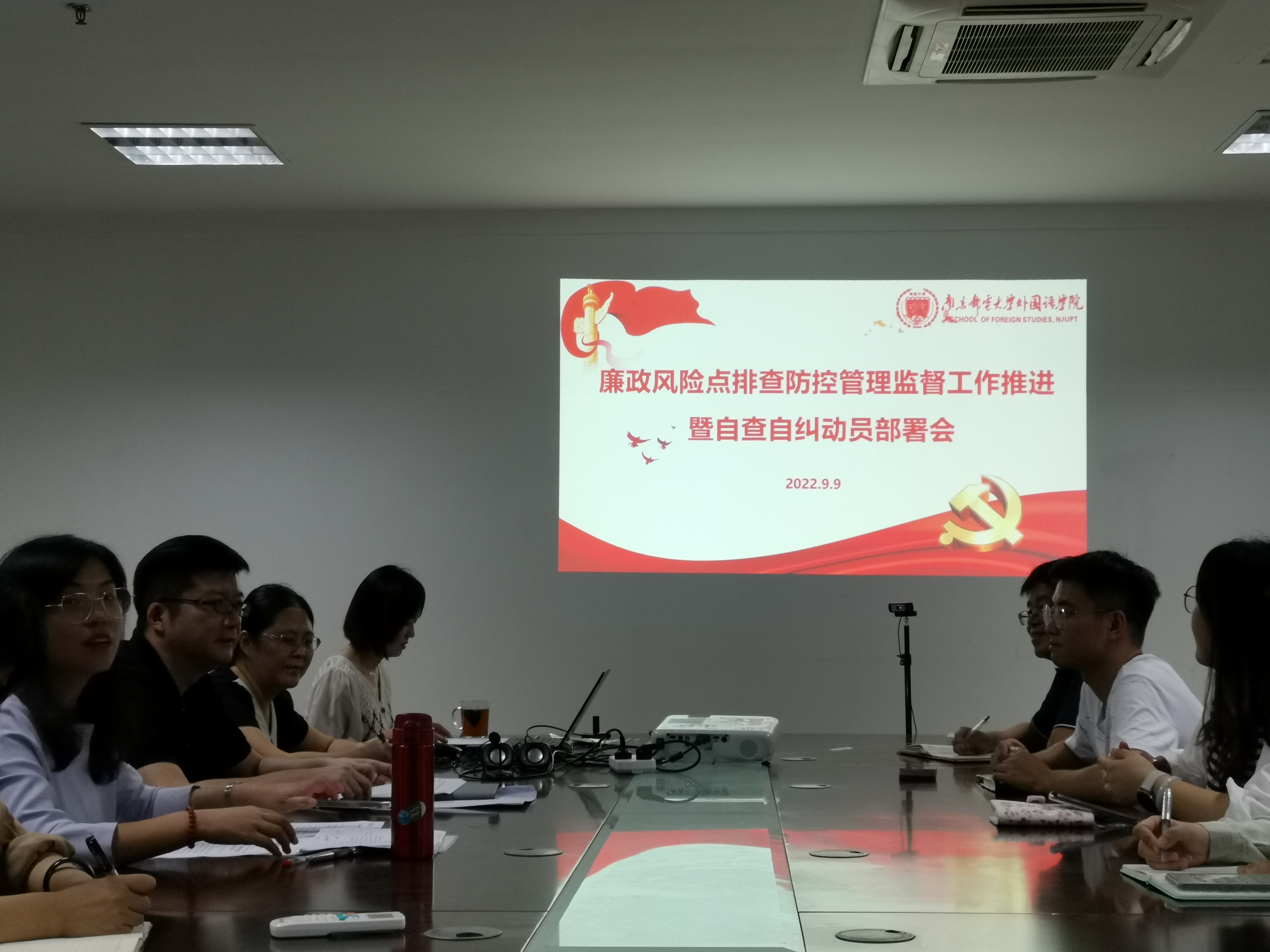 会议传达了《关于进一步加强廉政风险点排查防控管理监督工作的通知》(校纪办发〔2022〕6号),进一步学习了《中共南京邮电大学委员会关于廉政风险点排查防控管理监督工作的实施办法(试行)》、《中共南京邮电大学纪律检查委员会关于廉政风险点排查防控管理监督工作督查实施办法(试行)》等文件精神。