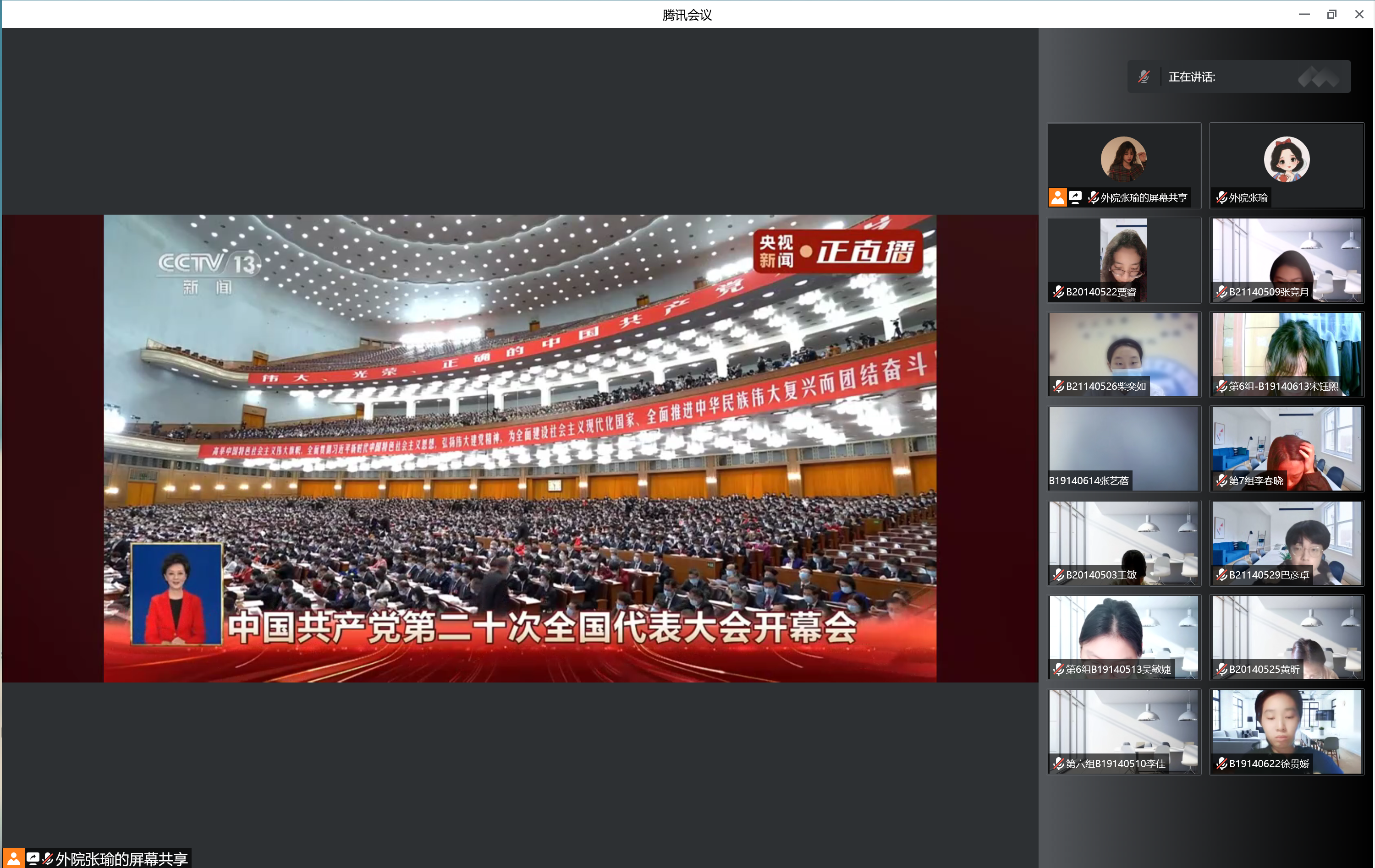 10月16日上午10时,中国共产党第二十次全国代表大会在北京隆重开幕。学院党委理论学习中心组全体成员、全院160余名党员师生集中观看了大会开幕实况。