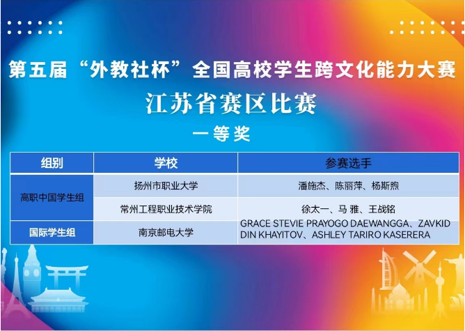 11月19日,第五届“外教社杯”全国高校学生跨文化能力大赛江苏省赛区比赛在南京举行。经过各校的层层选拔,来自省内近50所高校的53支参赛队伍参加了本次大赛。经过省内高校外国语言文学方面的专家学者严谨公正的评审,最终评出本科中国学生组、高职中国学生组和国际学生组一等奖、二等奖和三等奖各若干名。策略官网由三名留学生Grace Stevie Prayogo Daewangga (印度尼西亚籍), Zavkiddin Khayitov(乌兹别克斯坦籍)和Ashley Tariro Kaserera(津巴布韦籍)组成的参赛队伍(指导教师:王竞雄、刘涓涓、吴小海)获得江苏省赛区国际学生组一等奖,并将代表江苏省参加全国总决赛。这是继去年策略官网留学生以全省一等奖进入国赛并获得总决赛友谊之桥奖(一等奖)以来,国际学生团队再次晋级国赛。