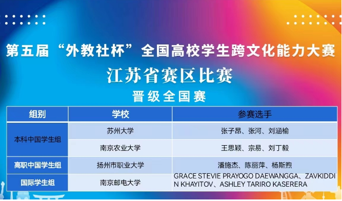 本届大赛由江苏省高等教育学会指导,江苏省高等学校外国语教学研究会、上海外语教育出版社、新华日报国际传播部共同主办,南京传媒学院承办,江苏省比较文学学会跨文化研究专业委员会提供学术支持。跨文化能力大赛作为一种将语言教学与跨文化教育有机结合的教学理念和模式,始终秉持“以赛促学、以赛促教、以赛促改”的宗旨,将“全球视野·国际规则”“中国故事·文化自信”“文化借鉴·美美与共”三大理念融入赛事的各个环节之中。